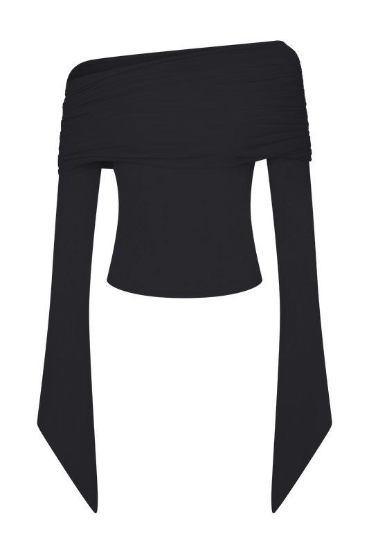 Lucinda Recycled Nylon Off Shoulder Top - Black