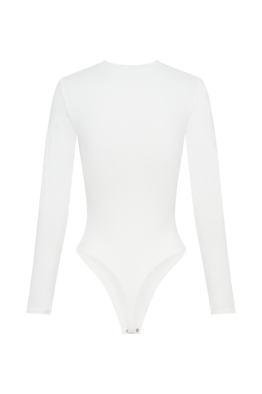 Delilah Long Sleeve Crew Neck Bodysuit - White