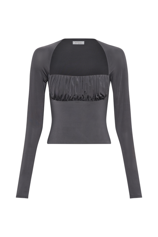 £3949% offBillie Slinky Ruched Long Sleeve Top - Charcoal