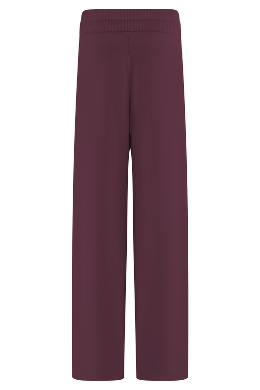 Diya Ribbed High Waisted Pants With Wire Hem - Plum