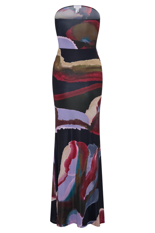Madison Strapless Slinky Maxi Dress - Multi Fluid Reverie Print