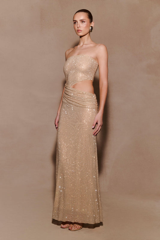 Regular price £175Unit price / perStarla Strapless Diamante Maxi Dress - Gold