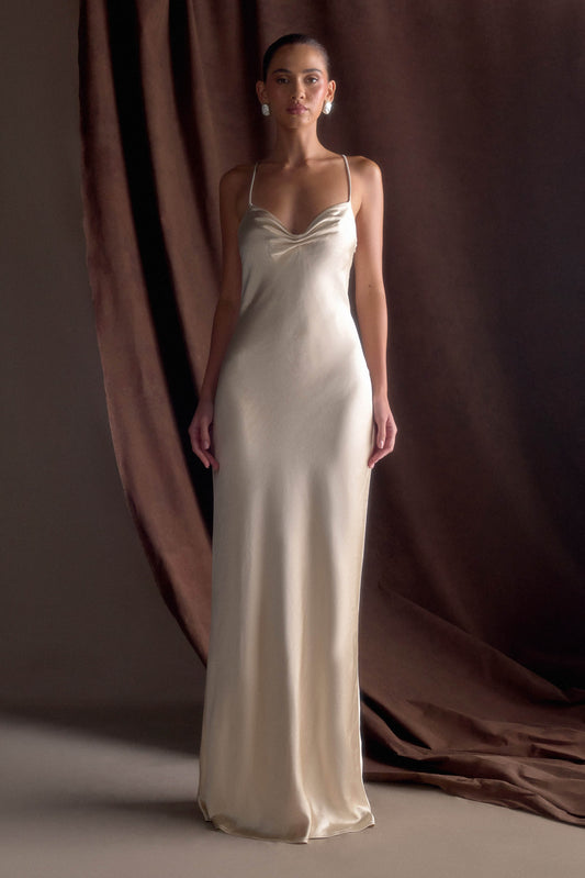 Lilly Sweetheart Satin Maxi Dress - Blush Gold