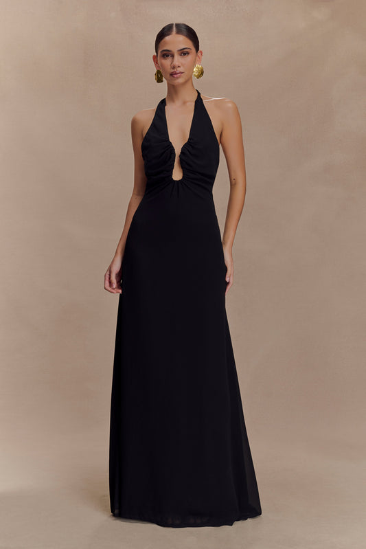 Malakhai Chiffon Halter Maxi Dress - Black