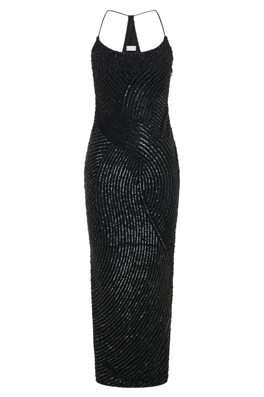 Bernadina Mesh And Slinky Halter Maxi Dress - Black