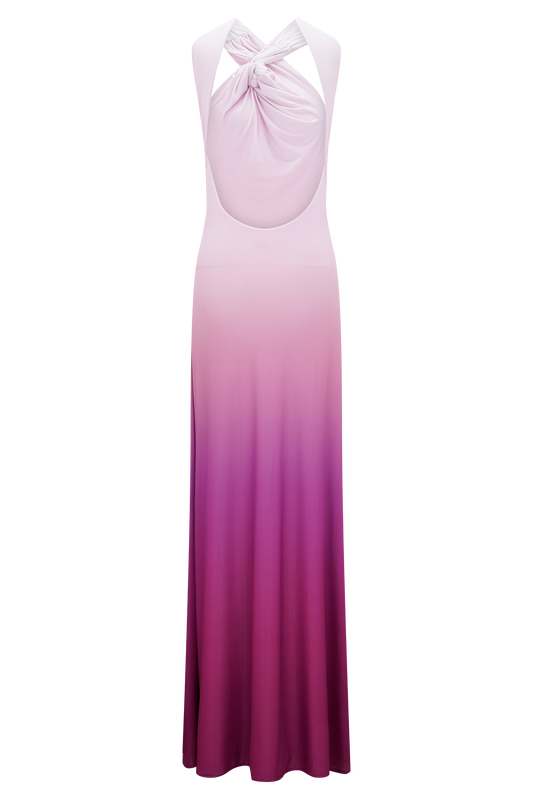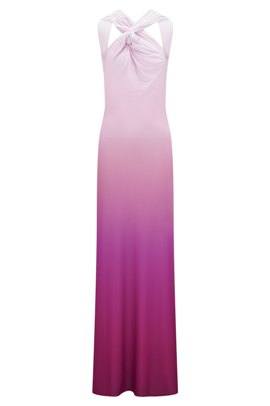 Marlee Asymmetrical Slinky Maxi Dress - Ombre Pink