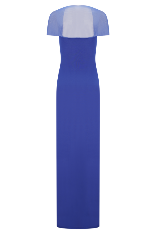 Slinky And Mesh Maxi Dress - Cobalt Blue