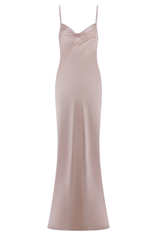 Cowl Neck Slinky Maxi Dress - Mocha Mousse