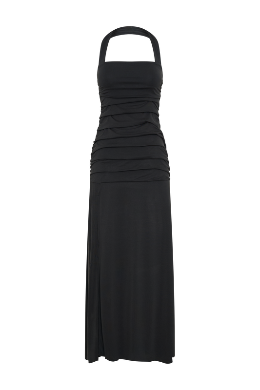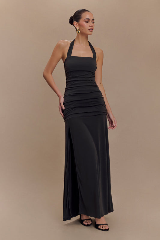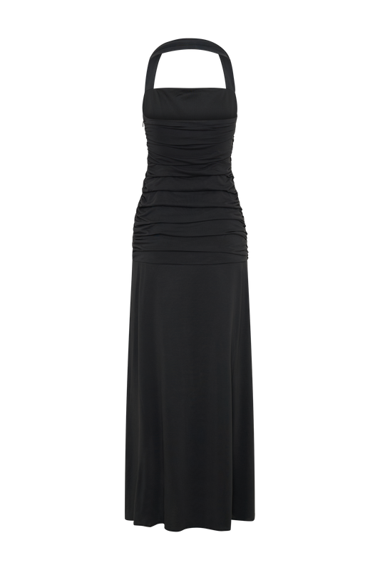 Peached Jersey Halter Maxi Dress - Black