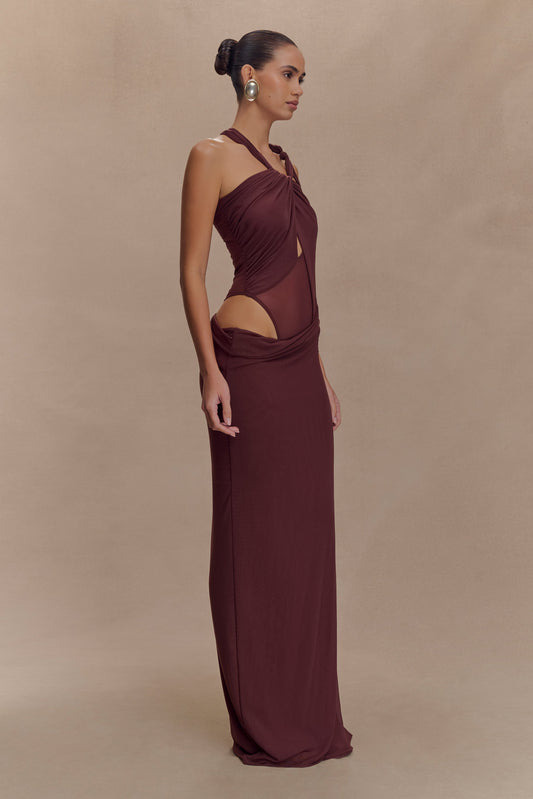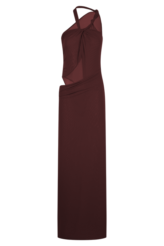 Edwina Knotted Mesh Maxi Dress - Mahogany
