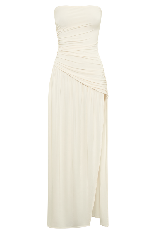 Bex Strapless Slinky Maxi Dress With Split - Ivory