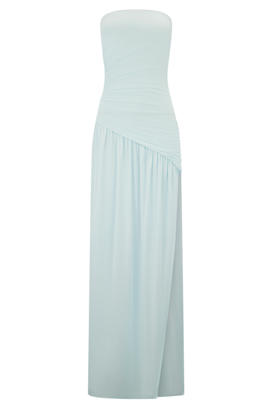 Bex Strapless Slinky Maxi Dress With Split - Pale Blue