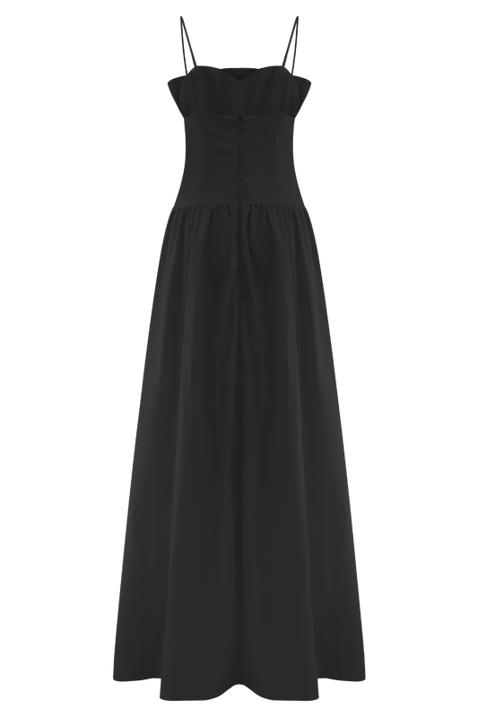 Janis Cotton Frill Maxi Dress - Black