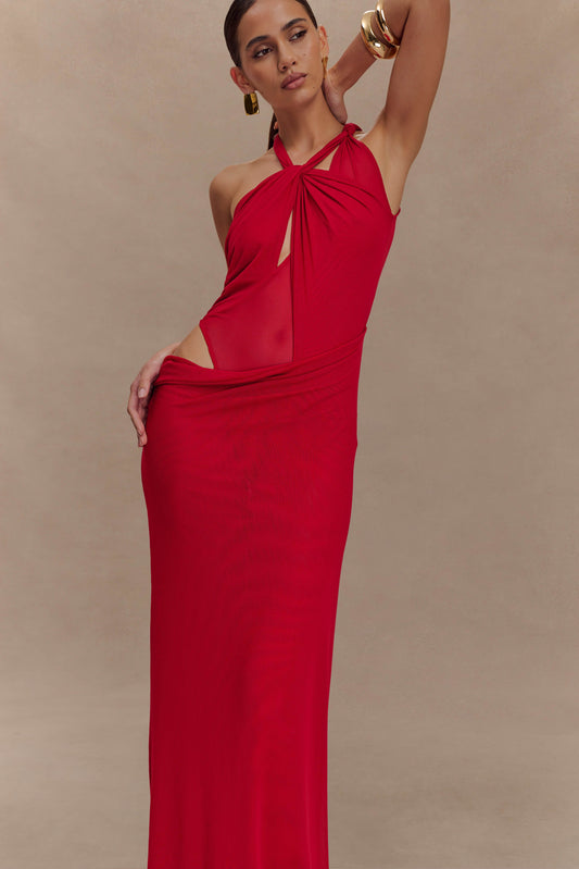 £10940% offEdwina Knotted Mesh Maxi Dress - Red