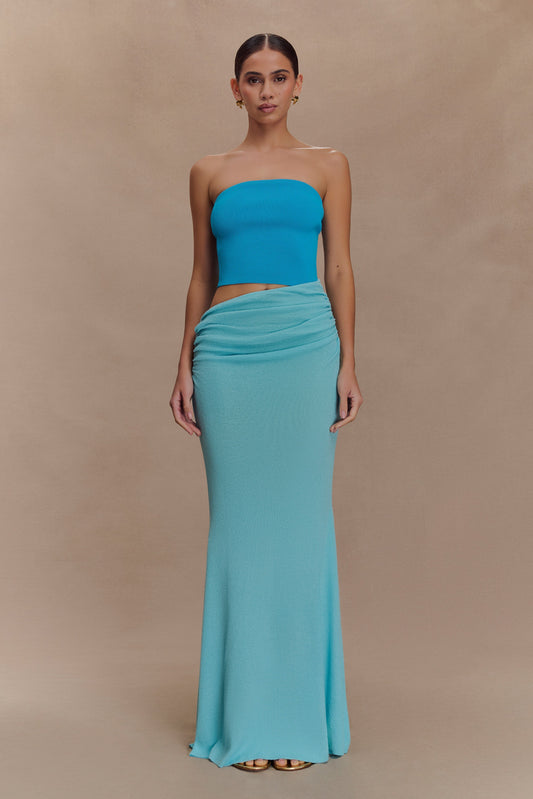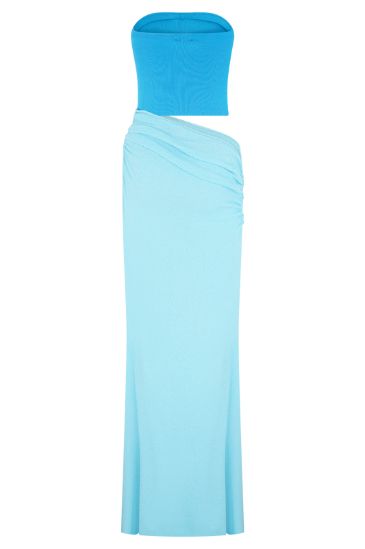 Jasiel Strapless Knit Maxi Dress - Cyan Blue