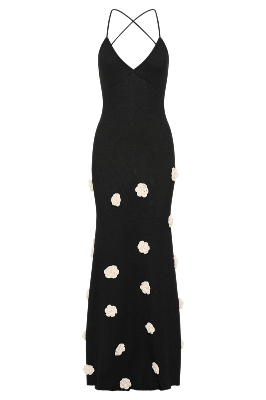 Suki Knit Maxi Dress With Flowers - Black/White