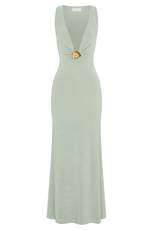 Beck Plunge Maxi Dress With Floral Hardware - Basil