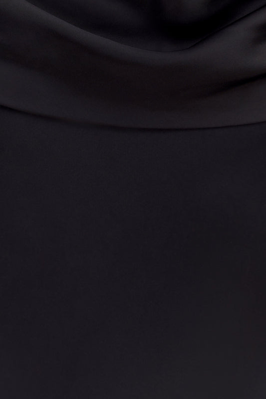 Cowl Neck Satin Maxi Dress - Black