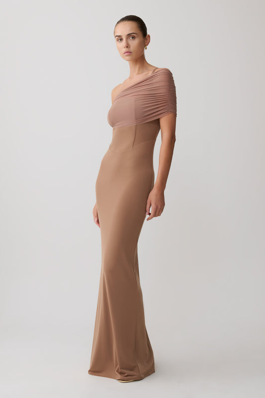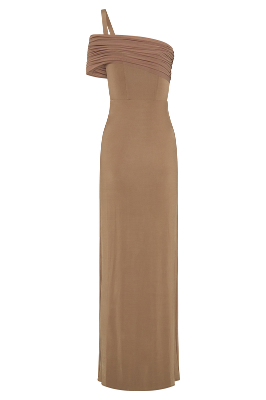 Ryn Twisted One Shoulder Maxi Dress - Dark Chocolate
