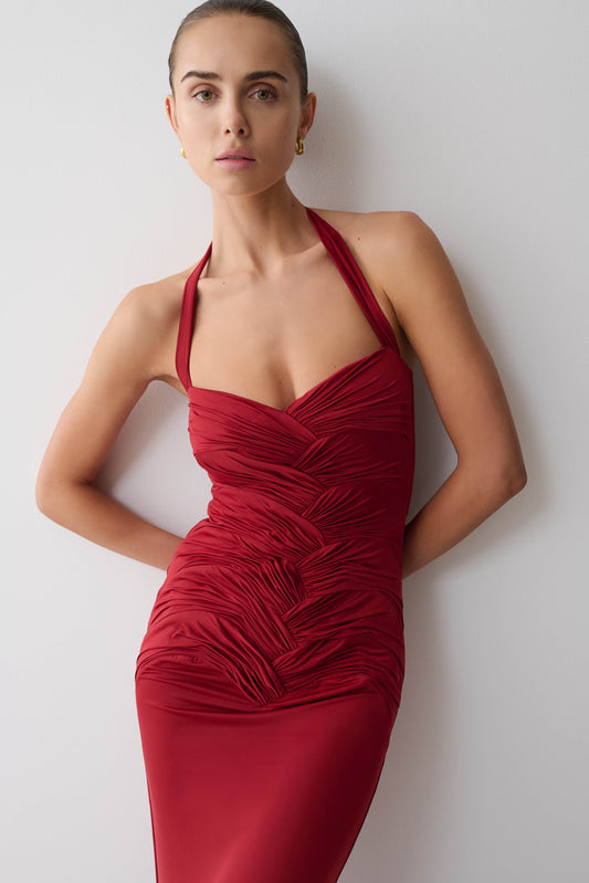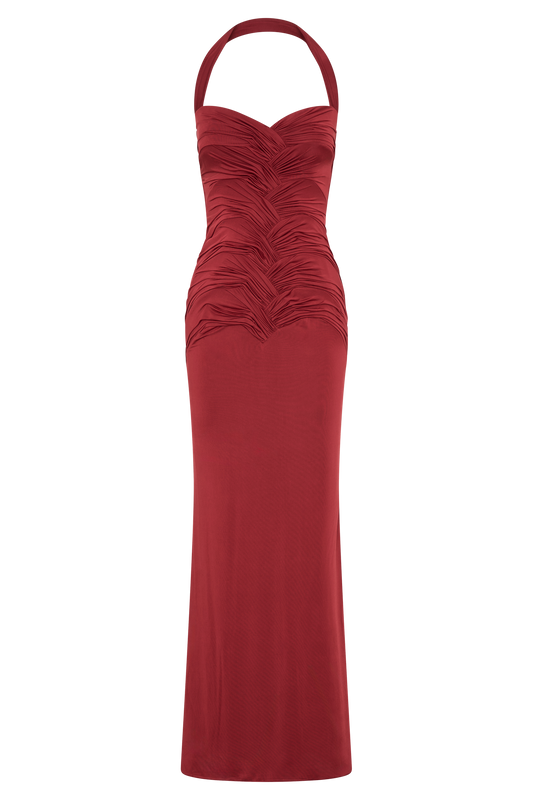 Hoai Gathered Slinky Halter Maxi Dress - Deep Red