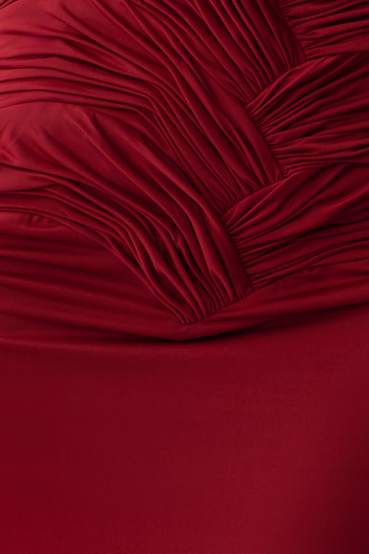 Gathered Slinky Halter Maxi Dress - Deep Red