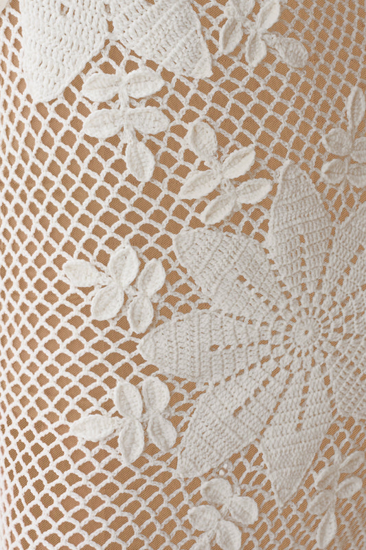 Hand Crochet Asymmetrical Maxi Dress - White