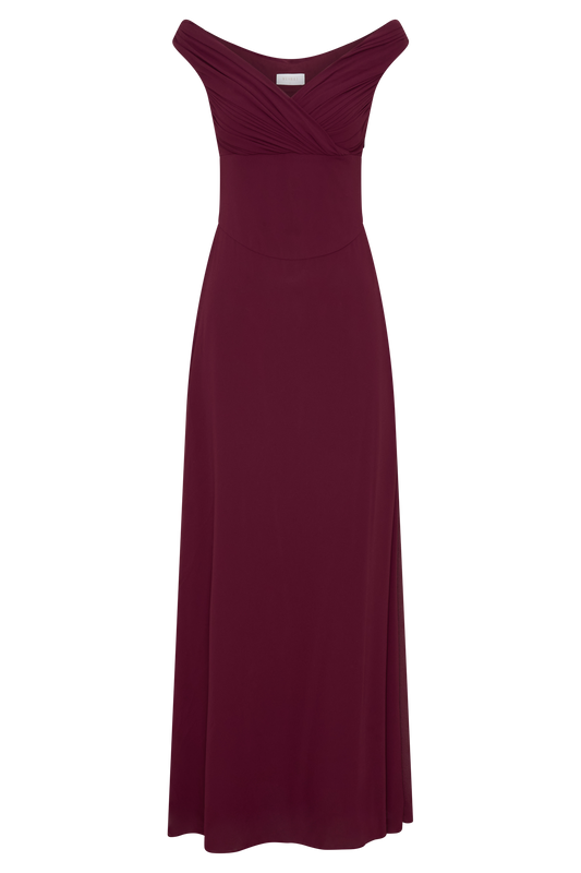 Mabel Off Shoulder Chiffon Maxi Dress - Merlot