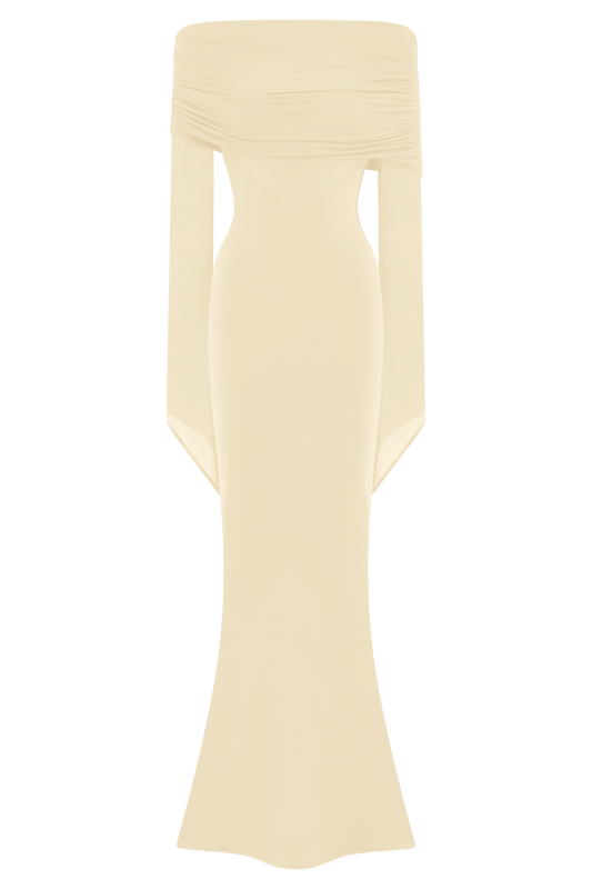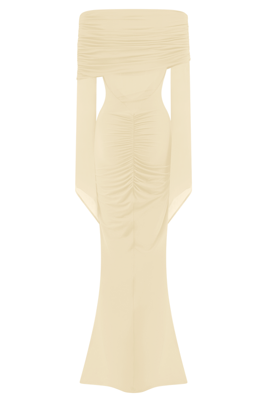 Caspian Slinky And Mesh Off Shoulder Maxi Dress - Ivory