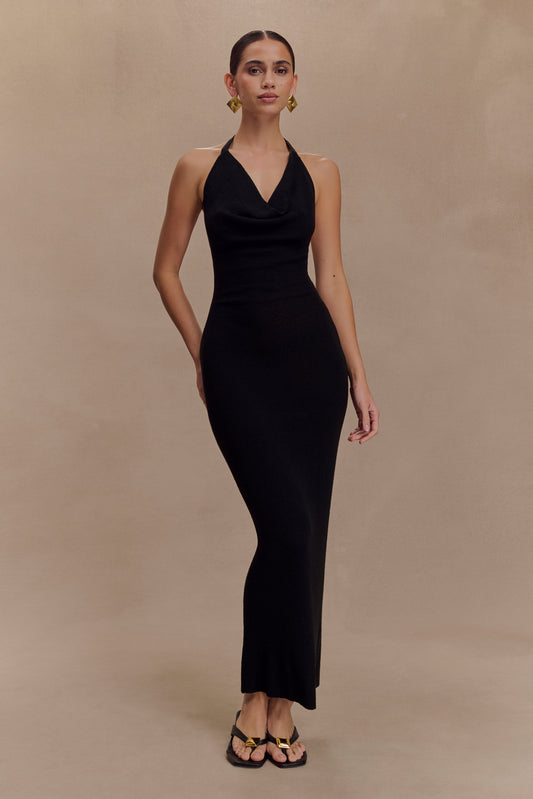Cindylou Halter Knit Maxi Dress - Peppercorn