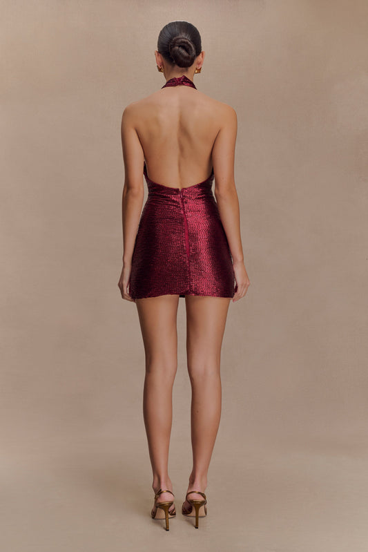 Carnation Sequin Halter Midi Dress - Gold