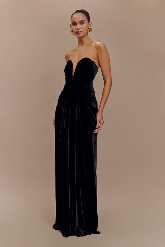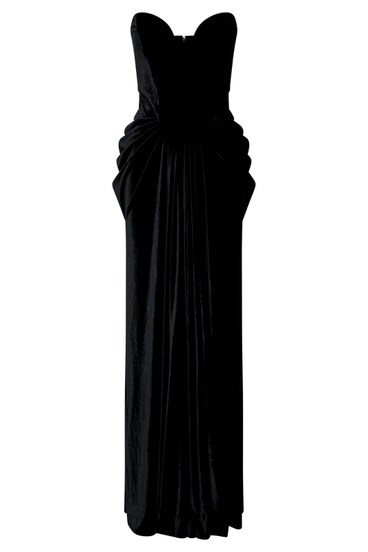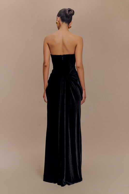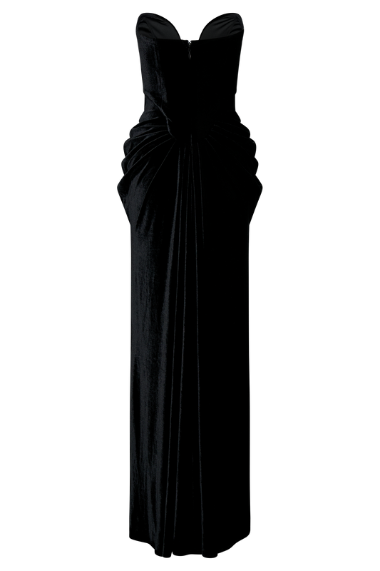 Strapless Velvet Maxi Dress - Black
