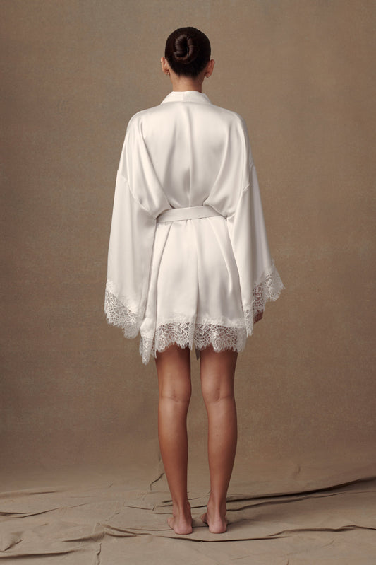Sullivan Satin Bridal Robe With Lace - Ivory