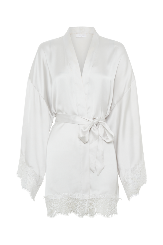 Annabeth Lace Trim Bridal Robe - White