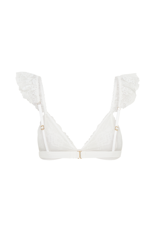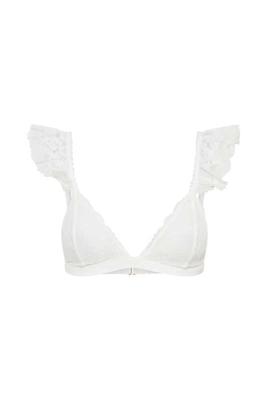 Anniston Lace Frill Triangle Bralette - White