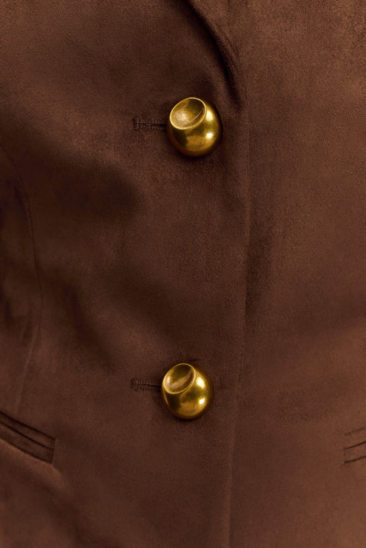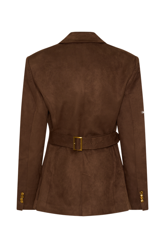 Sally Faux Suede Cinched Blazer - Milk Chocolate