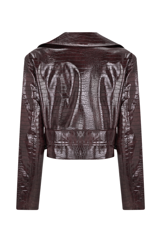 Croc Faux Leather Cropped Jacket - Burgundy