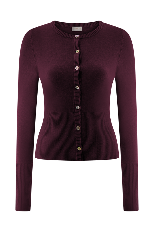 Reese Fitted Knit Cardigan - Merlot