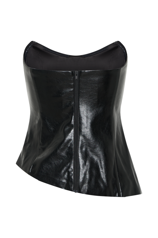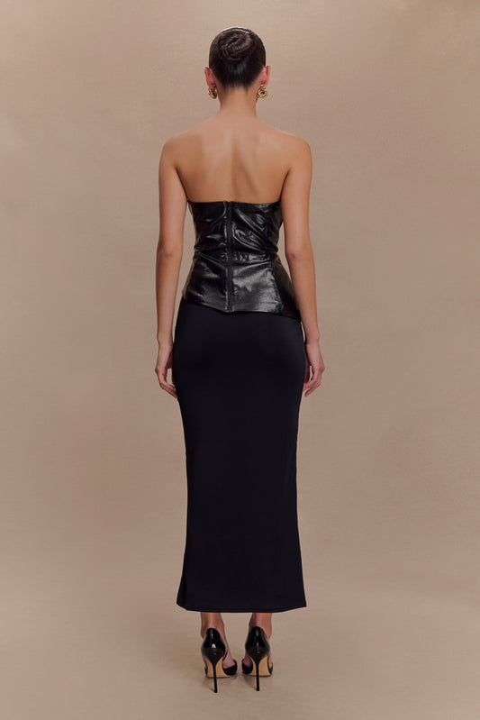 Claudette Strapless Satin Maxi Dress - Black Polka Dot Print