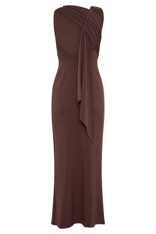 Catelyn Asymmetrical Scuba Jersey Midi Dress - Cacao Brown