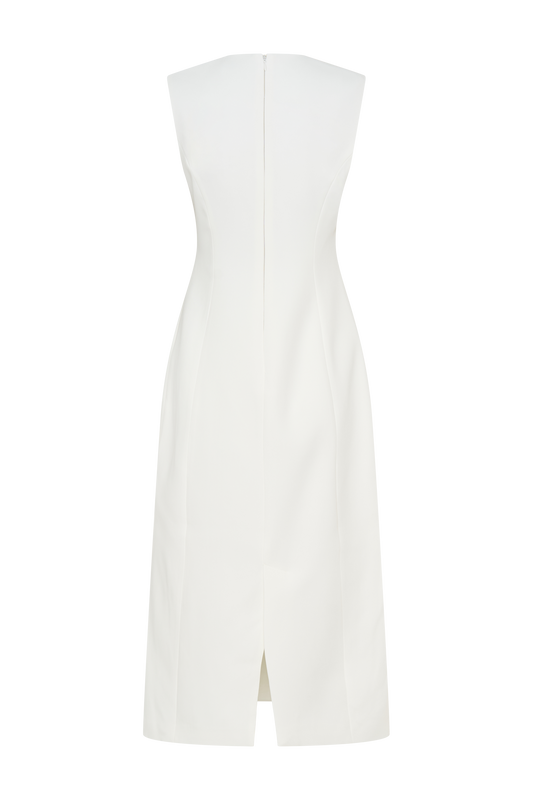 Audrine Suiting Sleeveless Midi Dress - Ivory
