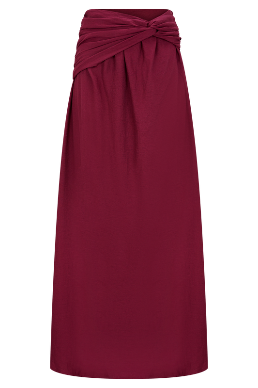 Scottie Gathered Linen Knot Maxi Skirt - Wine