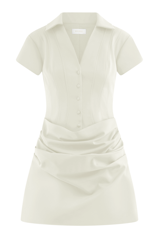 Collared Cotton Mini Dress - White