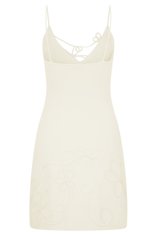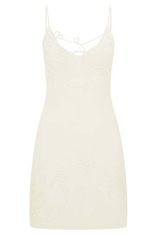 Liyah Floral Hand Crochet Mini Dress - Ivory