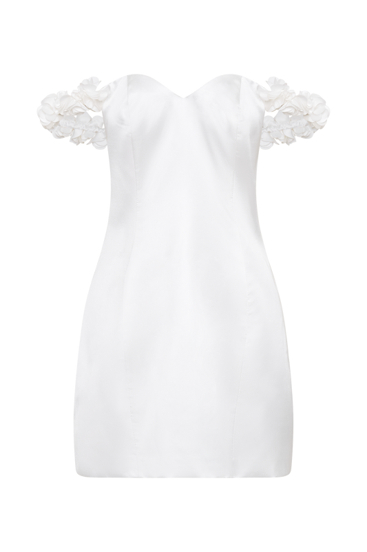Satin Rose Mini Dress - White