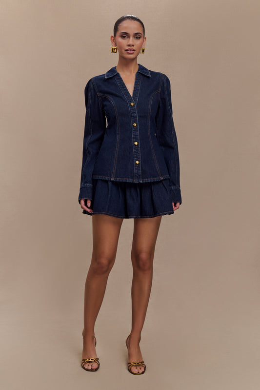 Julienne Denim Mini Skirt - Washed Indigo Blue