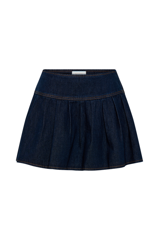 Candice Pleated Denim Mini Skirt - Indigo Blue