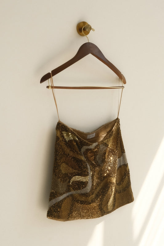 Hand Beaded Mini Skirt - Gold