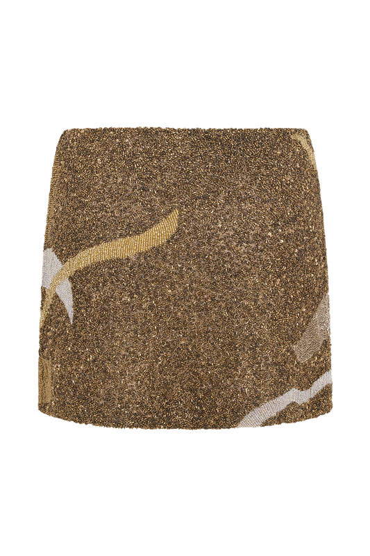Hand Beaded Abstract Mini Skirt - Gold