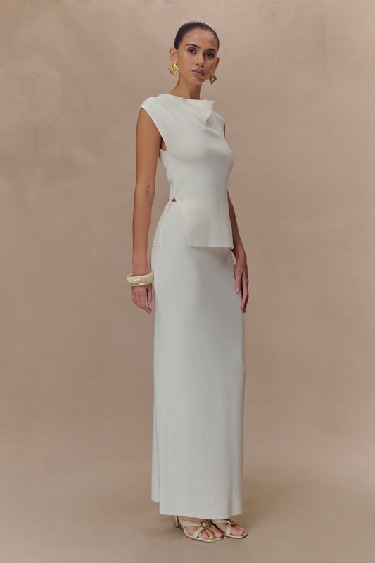 Cowl Neck Knit Top - White