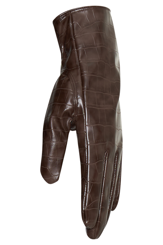 Atlas Faux Leather Crocodile Gloves - Chocolate